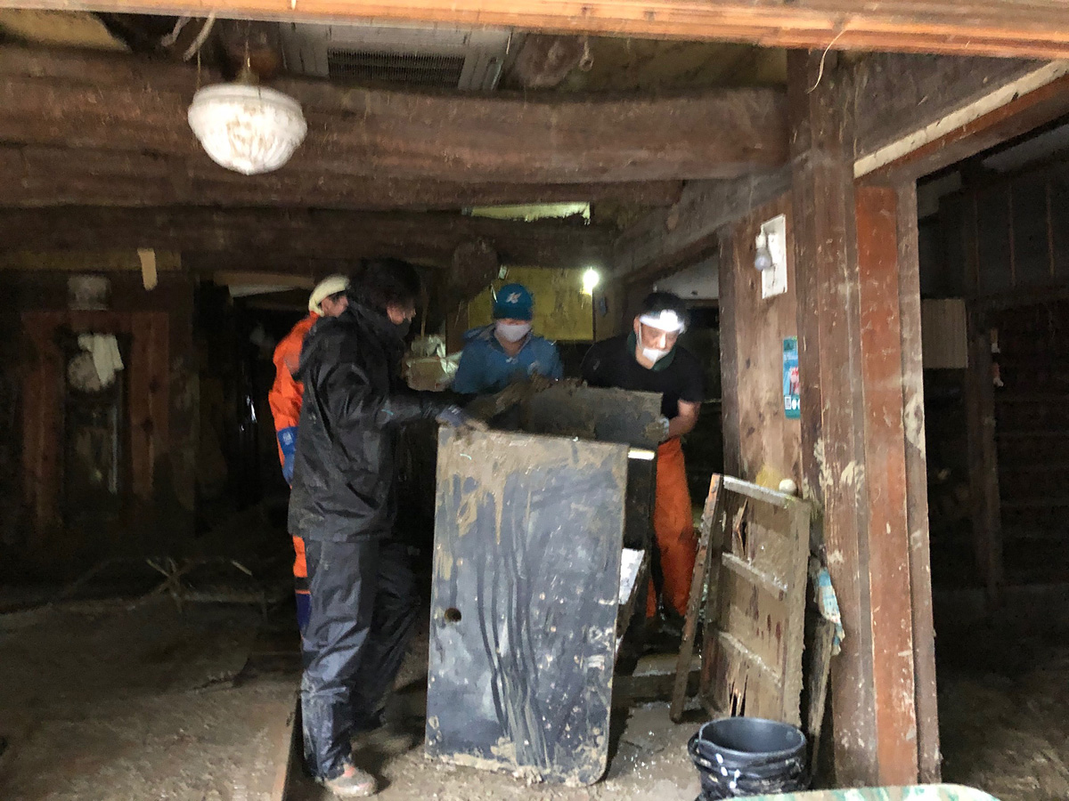 従業員やボランティアの方々のお力をお借りし、片付けや泥だし作業を行っていきました。