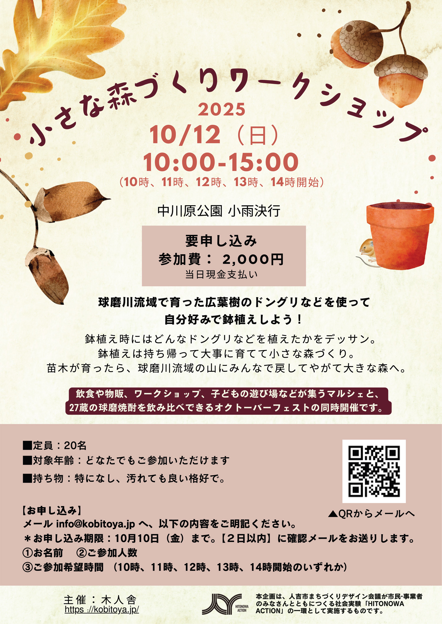 鉢植えを持って帰り、大切に育てて地域に植え戻す「小さな森づくり」。広葉樹のドングリを使って自分好みに鉢植えしよう。